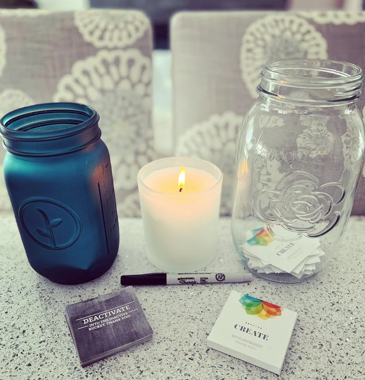 As I found myself in need of an extra tool this January, I turned to my friends at Abraham-Hicks, who never disappoint! Their latest suggestion is a box or jar for things&emotions we want to Deactivate and one for things we want to Create. I took the offering a little DIY and hopped onto Vista Print to make some square cards that I write on the back of. Example for Deactivation: Beating Myself Up, Doubt, Guilt, Anger. Example for Creation: Book Sales! Love! Ease! Highly recommend this activity! Easy and powerful. What could be better? Scraps of paper work perfectly!